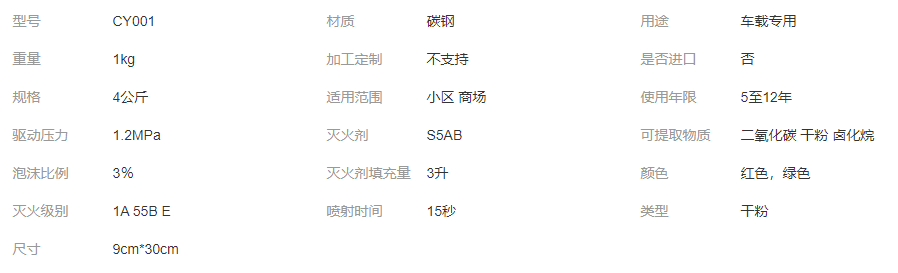 手提便攜式 碳鋼材質(zhì) 噴力強(qiáng) 射程遠(yuǎn) 車載專用干粉滅火器 1kg